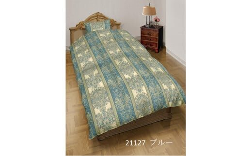 ポーランドホワイトグース羽毛布団(パイピング付き) シングルサイズ 21127ブルー