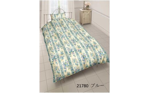 フランス産ホワイトダック90%羽毛布団 シングルサイズ(60サテン) 21780ブルー