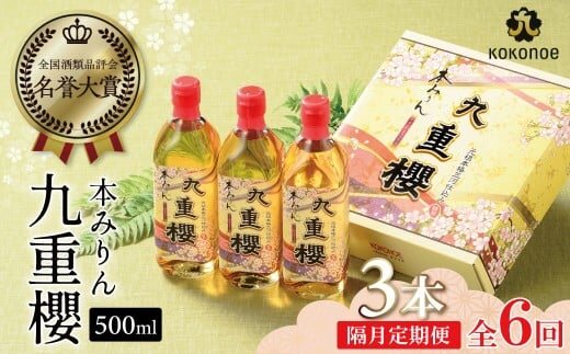 【2か月に1回お届け(全6回)】本みりん九重櫻 1.5L(500ml×3本) 定期便 三河みりん発祥の醸造元 九重味淋 ミリン 味醂 醸造のまち 碧南 国内産 水稲もち米 米こうじ 簡単プロの味に 本格米焼酎 全国酒類品評会 名誉大賞 受賞 調味料 料理 厳選素材 H002-093