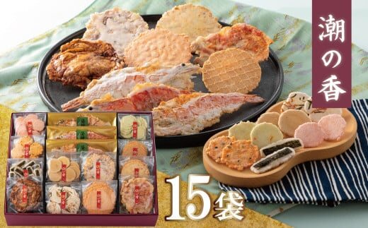 ワンランク上の海鮮煎餅詰合せ「潮の香15袋(13種)」 海老 えびせん 海老姿焼き 贈り物 ギフト お歳暮 せんべい おつまみ 海鮮 乾物 和菓子 醤油味 お菓子 おやつ 煎餅 小分け 海鮮せんべい えびせん家族 人気 高リピート H011-119