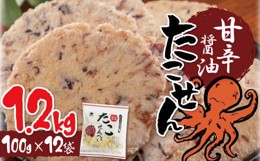 訳あり!元祖たこせんべい!「たこせんべい甘辛醬油味 1.2kg (100g×12袋セット)」 こだわりの味と食感 せんべい おつまみ 海鮮 乾物 和菓子 お菓子 おやつ 煎餅 小分け 海鮮せんべい チャック付き袋 えびせん家族 人気 高リピート H011-120