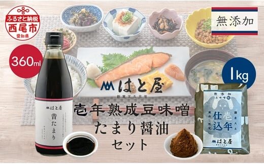 【毎日の健康に】無添加 壱年熟成の 豆味噌(1kg)・たまり醤油 セット・H058