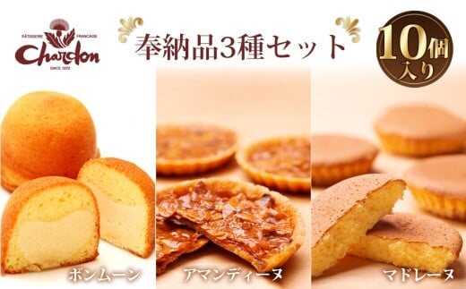 奉納品セット 3種10個入り / 洋菓子 焼菓子 ギフト 贈り物 詰合せ アーモンド キャラメル バター 菓子 スイーツ デザート アマンディーヌ マドレーヌ ボンムーン 愛知県 No.210