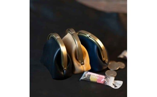 【soul;solid】ワンタッチ真鍮がま口ミニポーチ 色:ヴォーノアニリン/ブラック