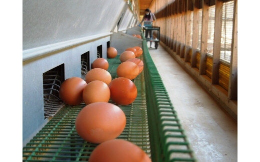 抗生物質やあらゆる薬剤を一切投与しない清浄な飼養環境の中で、のびのびとした放し飼いにより心身ともにストレスなく健康に育った純国産鶏「もみじ」の卵です。