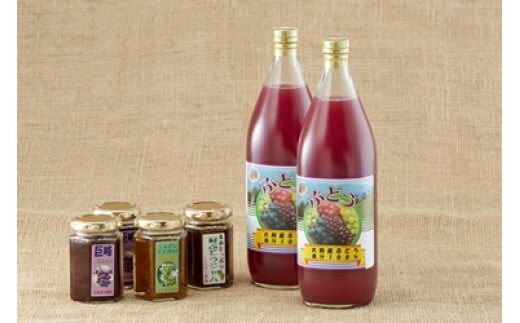 【数量限定】 シャインマスカット・ジャム 150g 1本 ぶどうジャム(果肉たっぷり) 150g 2本 果肉たっぷり緑ぶどうジャム 150g 1本 ぶどう100%ジュース 720ml 2本 |