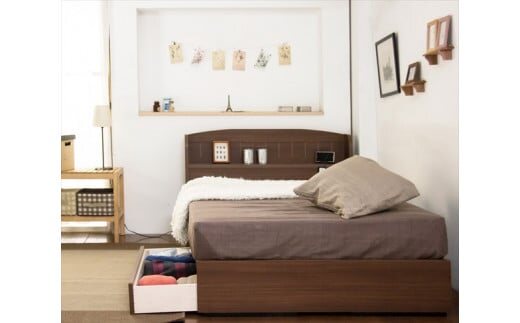 枕元には1口コンセント、ベッド下には2杯の大型引出しを備えた機能性も魅力です。