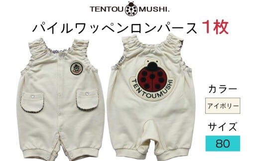 TENTOUMUSHI パイルワッペンロンパース・アイボリー・80サイズ|子供 服 赤ちゃん ベビー スナップ 釦 ボタン 肩ひも 綿 国産 日本製 お祝い てんとう虫 [0812]