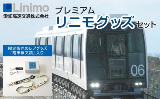 電車線を切断・研磨加工して制作した限定販売の文鎮やLinimoキーホルダーなど、おすすめのリニモグッズを詰め合わせました。