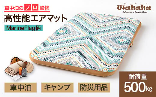 車中泊のプロ監修のエアマット「Wahaha camper(ワハハキャンパー)」MarineFlag柄【1598552】