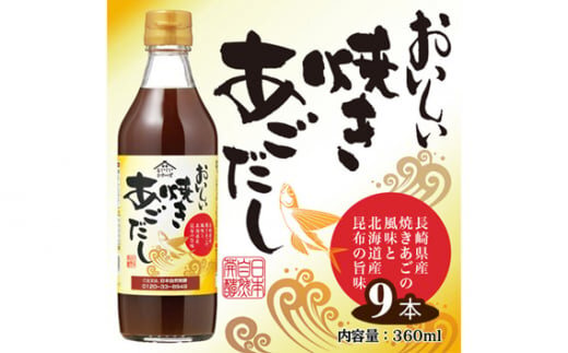 No.143 おいしい焼きあごだし 360ml 9本セット / あご出汁 焼あご 昆布 トビウオ だし ダシ 出汁 調味料 簡単 手軽 便利 美味しい 旨味 つゆ うどん そば だし巻き卵 茶碗蒸し 炊き込みご飯 鍋 なべ 愛知県