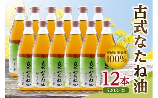 古式なたね油 (東浦町産菜種100%) 520g入り 12本
