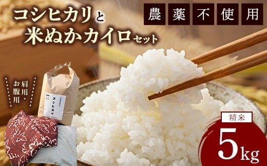 コシヒカリと米ぬかカイロのセット3 白米×5kg 米ぬかカイロ(肩用×1点 お腹用×1点)◇ | 米 お米 白米 精米 ご飯 ごはん カイロ