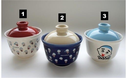 四日市萬古焼と、四日市市の人気マスコットキャラクター「こにゅうどうくん」がドッキングしたオリジナルデザインの蓋付き丼です。
