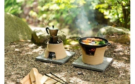 【 セット内容 】コヘッツイHAJIME、鋳物釜、木蓋、・台座(溶岩プレート)、固形燃料×3個、固形燃料用トング、耐熱レンガ×2個