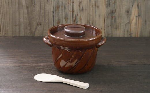 【萬古焼(ばんこやき)】捻れ2合ごはん鍋 飴(しゃもじ付)