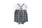天竺素材の白シャツに、布帛のチェックのパンツを着ている風デザインです。