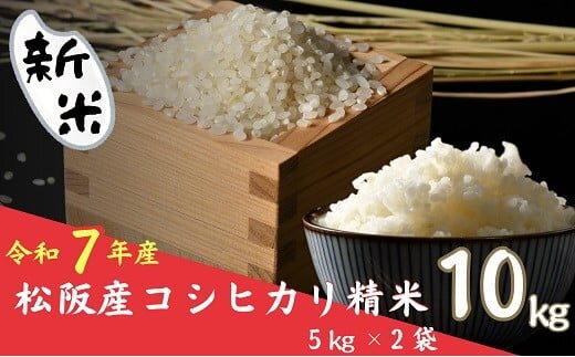 令和7年産 新米 コシヒカリ 松阪産 精米 10kg(5kg×2)( 米 お米 こめ コメ おこめ 白米 精米 こしひかり コシヒカリ 三重県 松阪市 新米 )【002109】