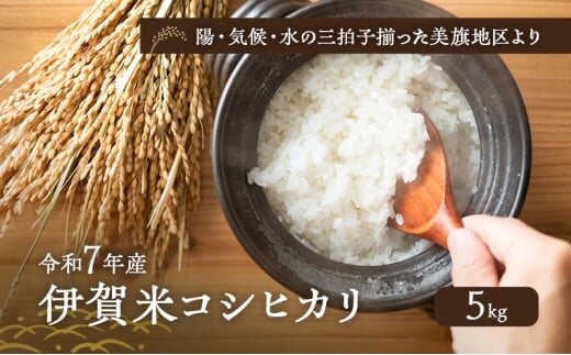 陽・気候・水の三拍子揃った美旗地区より みはたM'sファーム 令和7年産 伊賀米コシヒカリ 5kg 3年連続 特A 米 こしひかり ご飯 ごはん 白米 精米 三重県 名張市