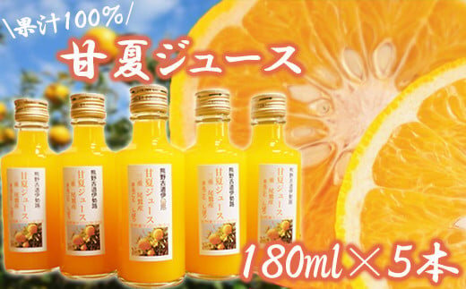 果汁100% 甘夏ジュース180ml×5本セット 便利な 小分け 甘夏 蜜柑 果物 柑橘 フルーツ ジュース 国産 三重県 尾鷲市 AI-5