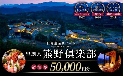 世界遺産リゾート 里創人 熊野倶楽部 宿泊割引券 50,000円分 【ミシュランガイド2019 三重旅館部門 最高ランク評価☆】 宿泊券 宿泊チケット チケット 割引券 トラベルクーポン トラベル 旅行 観光 温泉 グルメ 人気 おすすめ 三重県 熊野市【madm0002】