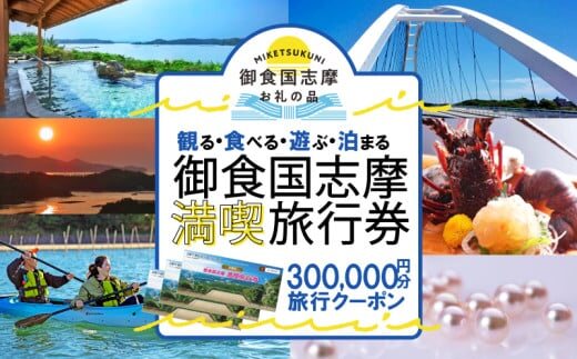 志摩 満喫 旅行券 300000円分 旅行 クーポン 伊勢志摩 宿泊券 トラベル チケット 人気 観光地 おすすめ 観る 遊ぶ 食べる 泊まる 観光 温泉 ホテル 旅館 ギフト 金券 伊勢 志摩 三重 東海 近畿 利用券 体験 国内旅行 アウトドア 絶景 海 いせ しま 1000000円 百万円 100万円
