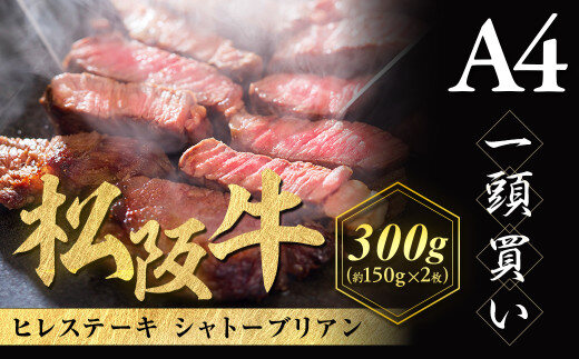 松阪牛ヒレステーキ シャトーブリアン 300g(約150g×2枚) 極上の柔らかさ 化粧箱入り 松坂牛 松阪肉 高級ブランド牛 フィレステーキ レア 焼肉 ビフテキ 自宅用 贈答品 ギフトA4 A5 特産松阪牛 お歳暮 お中元 牛肉 とろける 和牛 三重県 NTY-08