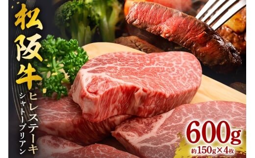 松阪牛 ヒレステーキ( シャトーブリアン ) 600g(約150g×4枚)/ 冷凍 瀬古食品 ヘレ 松阪肉 名産 お取り寄せ 牛肉 お肉 肉 和牛 黒毛和牛 国産 国産牛 ステーキ ヒレ ひれ 希少部位 ブランド牛 ギフト 贈答用 産地直送 松阪 牛 三重県 大台町 (0077)