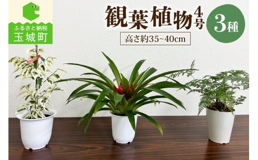 観葉植物4号のプラ鉢3種セット【グズマニア・エンパイアとベンジャミン・スターライトと西洋シノブ】