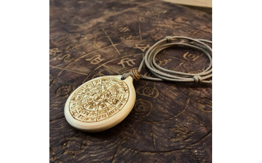 龍体文字&ヲシテ文字 両面刻印 フトマニ図 パワーネックレス 三重県産 ひのき製 紐の色 こげ茶/KOSHIKARI ふるさと納税 アクセサリー 大紀ブランド 三重県 大紀町