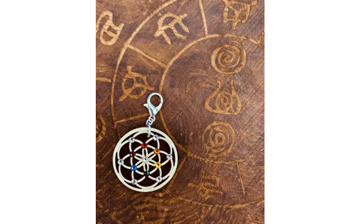 この神聖幾何学は天と地を合せた全ての生命の存在、事象、輪廻転生を表す「神聖幾何学模様」の一つで、6つの円の中心に1つの円が加わった、7つの円によって構成されています。