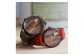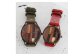 【ペアウォッチ】5種類の天然樹木がパズルのようで可愛いハンドメイドウォッチ WB082ペアセット Lサイズ-赤・Xサイズ-オリーブ