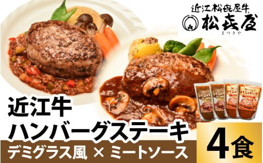松喜屋 近江牛 ハンバーグステーキ デミ風マッシュルームソース×2個+特製ミートソース×2個[A008] / 近江牛 手作り ハンバーグ デミグラスソース ミートソース こだわり コク 晩御飯 送料無料 ギフト のし 熨斗 お歳暮