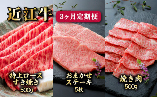 近江牛 定期便 3ヵ月 特上ロース 500g ステーキ 5枚 焼肉 500g すき焼き しゃぶしゃぶ 和牛 国産牛 黒毛和牛 ブランド牛 雌牛 牛肉 牛 肉 希少部位 500 ギフト お歳暮 贈り物 贈答 ご進物 みのや 滋賀 彦根
