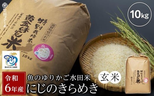 【数量限定】令和6年産【湖魚と共に育てたお米】魚のゆりかご水田米「にじのきらめき」玄米10kg【柴田ファーム】お米 玄米 近江米 米 にじのきらめき こめ コメ 10キロ 彦根 ひこね 滋賀 10kg おすすめ おこめ