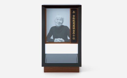 故人をほとり(=そば)に感じていただけるように、小さな遺品や骨壺と共にお祀りできる写真立てです。指輪や時計などが入る小さな室と骨壺などを置ける小さな台を設けています。磁石を埋め込んでおりますので、小さな仏壇として、位牌壇としてもお祀りしていただけます。備考札板1枚付き(彫代込み)