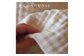 肌触りのいい柔らかさを存分に味わえる「ガーゼケット」=ガーゼの肌掛け(毛布)を一枚一枚たいせつに作っています。