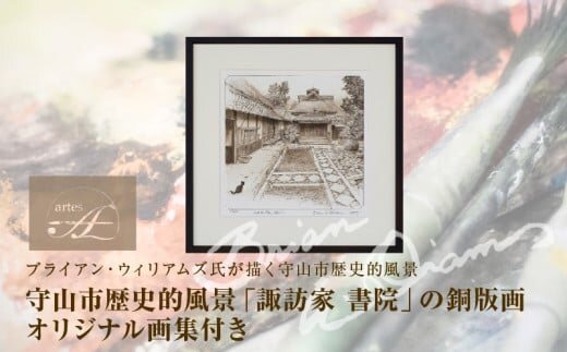 ブライアン・ウィリアムズ氏 作 守山市歴史的風景「諏訪家 書院」の銅版画 オリジナル画集付き