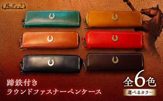 蹄鉄付きラウンドファスナーペンケース (ブラック) 栗東市 / 株式会社ブルズエフ [BIAU496]