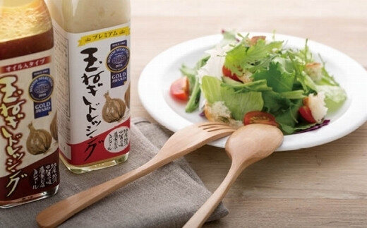 自社で栽培した玉ねぎ、青ネギのドレッシングとにんにく醤油の詰め合わせです。