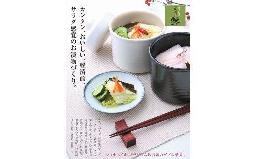 テーブルの上や冷蔵庫の中で、カンタンに美味しい一夜漬け作りが楽しめます。