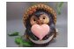 信楽の代表たぬきの掌の上にピンクのハートを乗せた、かわいい狸