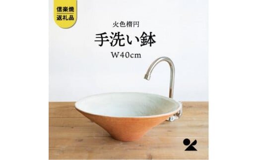 火色楕円手洗鉢(W40cm)washbowl-02 信楽焼・明山