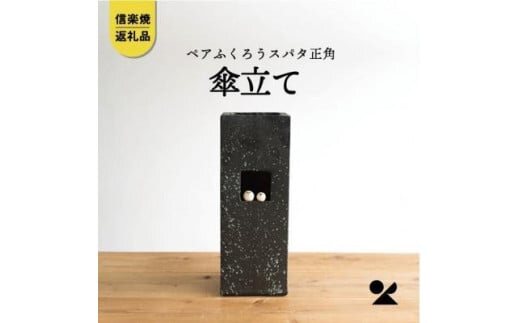 ペアふくろうスパタ正角傘立 B155-06 信楽焼・明山