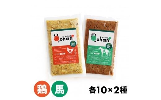 「わんこのごはん 鶏・馬 2種各10個」をお届け