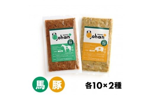 「わんこのごはん 豚・馬 2種各10個」のセットでお届け