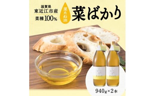 東近江市産 菜たね油「菜ばかり」940g 2本セット NPO法人 愛のまちエコ倶楽部 滋賀県 東近江市 A-F14 菜種油 油 食用油 無添加 圧搾 調味料 ギフト エコ 循環型 有機 オイル