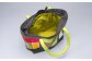 カラフルな8号帆布を格子に配置したダブルファスナーのトートバッグです。