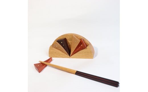 いつもは 抽斗の中に入っている「箸置き」。 そんな「箸置き」をオブジェのように飾っていただけるモノにしました。 食卓の隅にでも置いていただいて、使う時にさっと取り出して お使いください。 普段は あまり使わない「箸置き」ですが、使うことで 毎日の食事が少し変わってくると思います。 そして自然と手を合わせて食べていただけるような気がします。気軽に お使いいただければ 嬉しく思います。 ◎ご注意 ・自然の木の使っていますので、色合いや木目の感じが それぞれ違います。ご了承ください。 ・箸置きは 普通に洗っていただけますが、水に長時間浸けないようお願いします。 ・食洗機のご使用は お控えください。 ・台は 水に強いオイルを使用していますが、洗っていただくことは出来ません。 (提供)AKIRA WOODWORK
