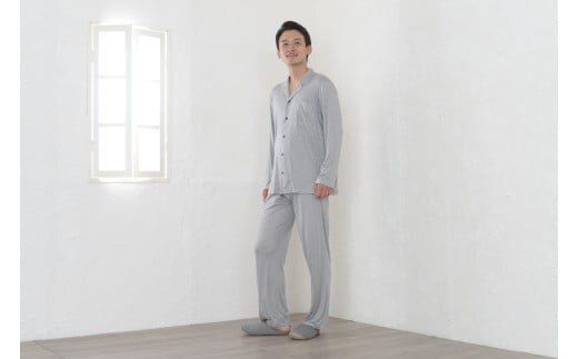 どの年代からも愛されるテーラーカラーデザインのメンズパジャマ。 (グレー)